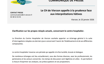 La direction du Centre Hospitalier de Vierzon souhaite apporter un éclairage général à la suite d’interrogations récemment relayées concernant l’avenir de l’établissement. L’établissement traverse une période de dialogue renforcé avec […]